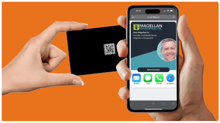 Each card also comes with a special QR code that can be scanned with any phone's camera. This code then leads your potential customer to your digital business card so that they can save your contact info.